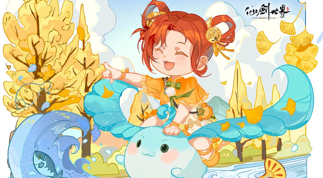 “哇呜——小叶灵,冲呀!”平静的溪水忽地水花四溅,原来是小忆如正骑着浮波叶灵与鱼儿们竞速呢。