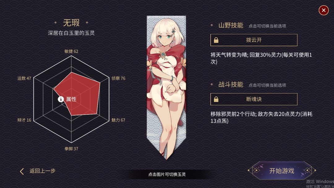游戏开始时,可以看到玉灵6个维度的能力属性