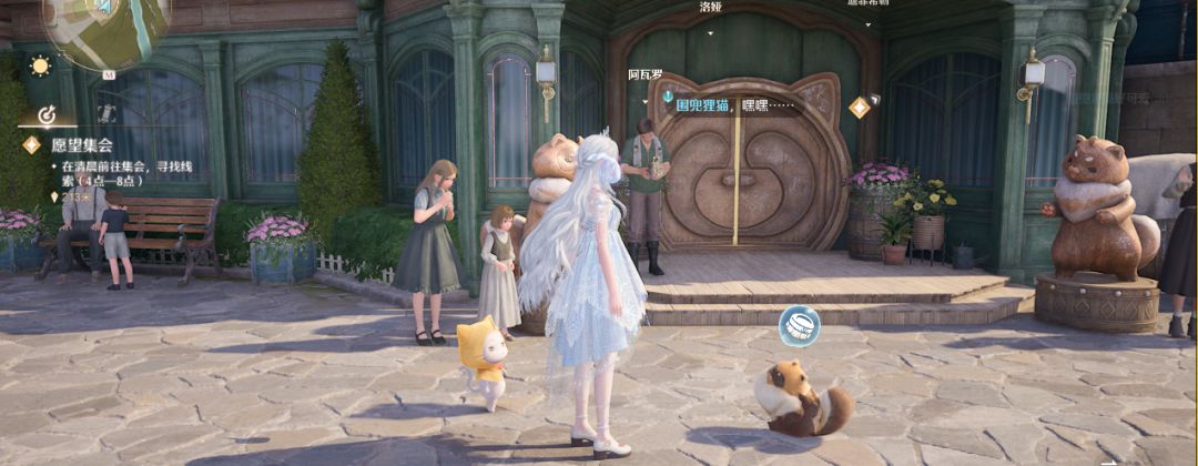 照片调查·动物的踪迹:与阿瓦罗NPC对话-如图所示(可以顺手跟面前的狸猫清洁可以获得-围兜毛球可用于设计图制作)