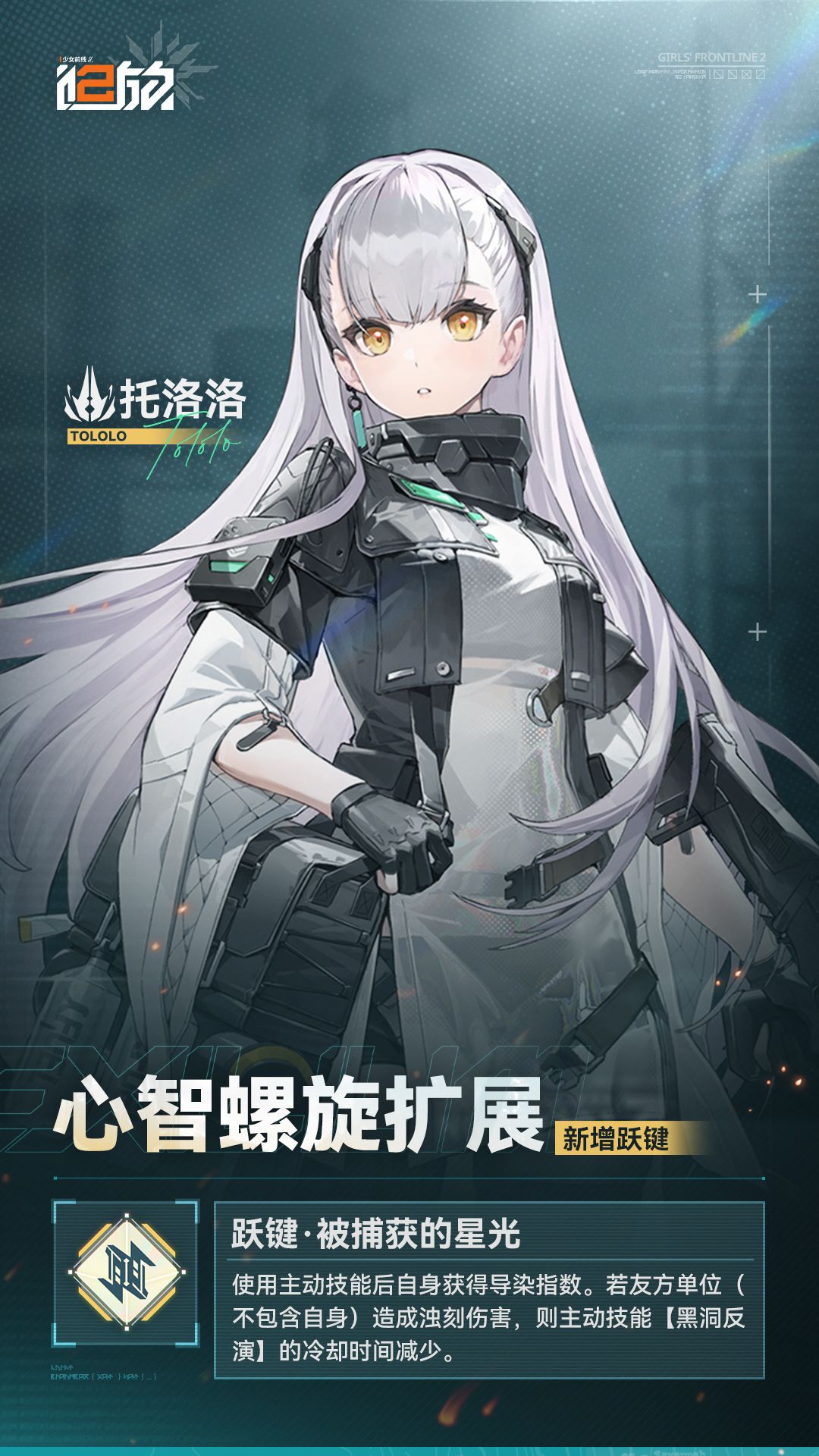 尊敬的指挥官,12月10日维护后,精英人形「托洛洛」、精英人形「塞布丽娜」、标准人形「寇尔芙」心智螺旋扩展,开放全新跃键。详情请看下图!