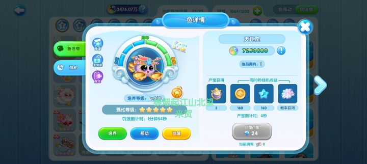 一小时是6×4×2=48鱼宝,差不多3天2只,勤奋一点5天4只,亲测3组在一个月搞定2只觉醒