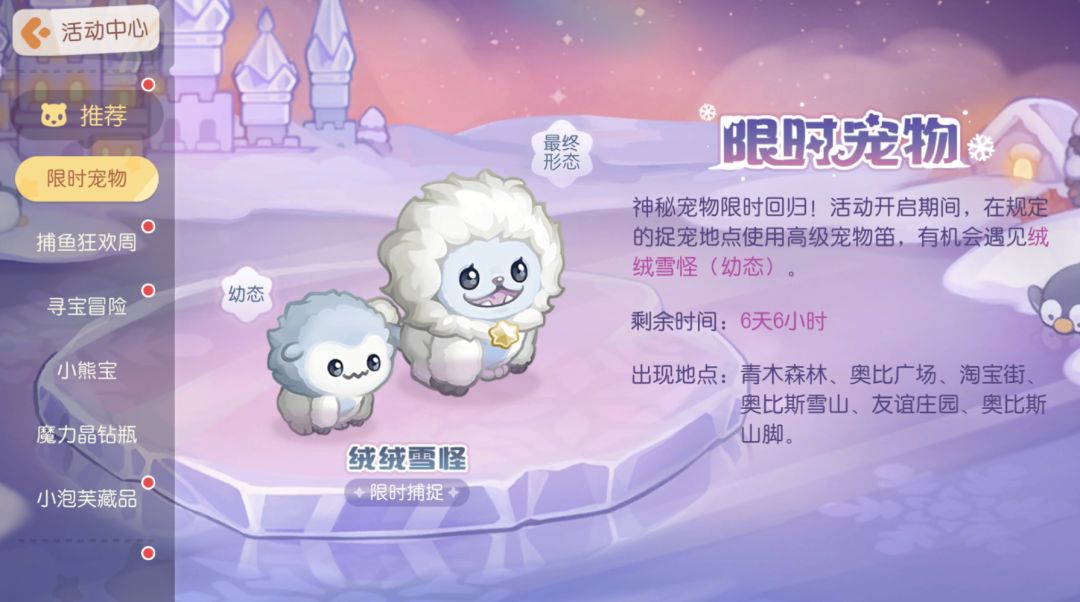 【复刻活动:「绒绒雪怪」宠物限时复刻】
