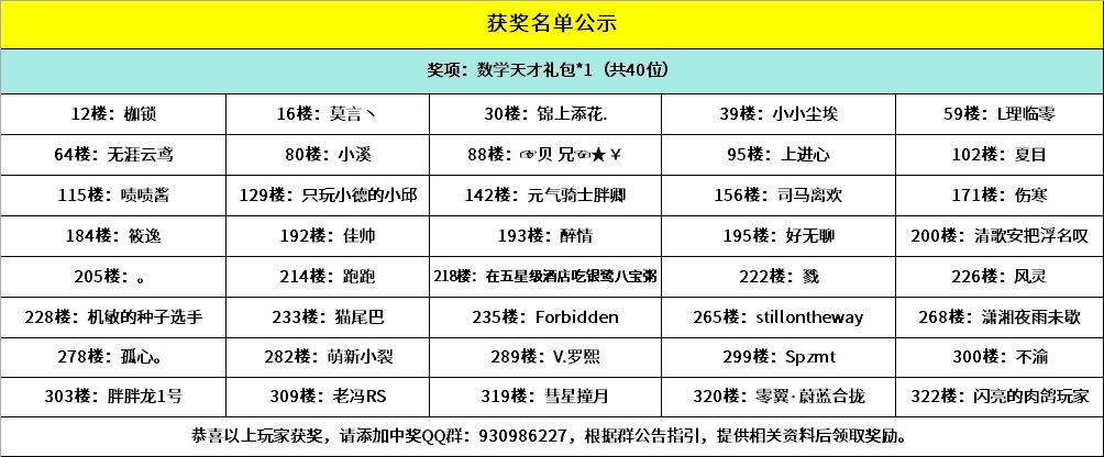 1、抽取40位算数能力一流的小骑士,赠送数学天才礼包*1;