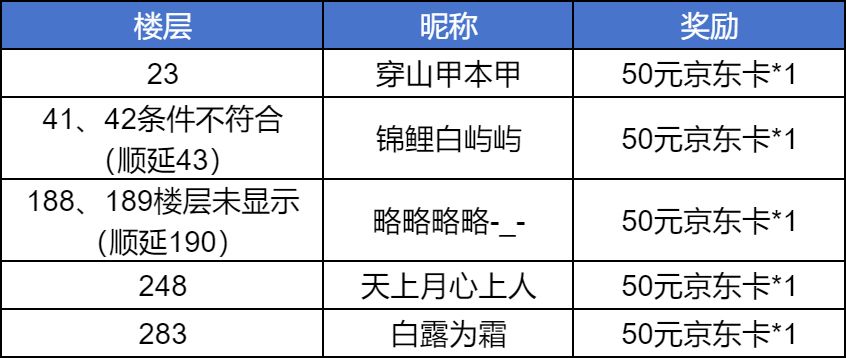 经核实,41、188楼层发帖的冒险者在参与活动时没能完全符合活动要求,因此很遗憾,其对应的奖励资格顺延至43、190楼发帖的冒险者,感谢各位冒险者积极的参与,还请一定要注意按照活动的规则正确参与哦~