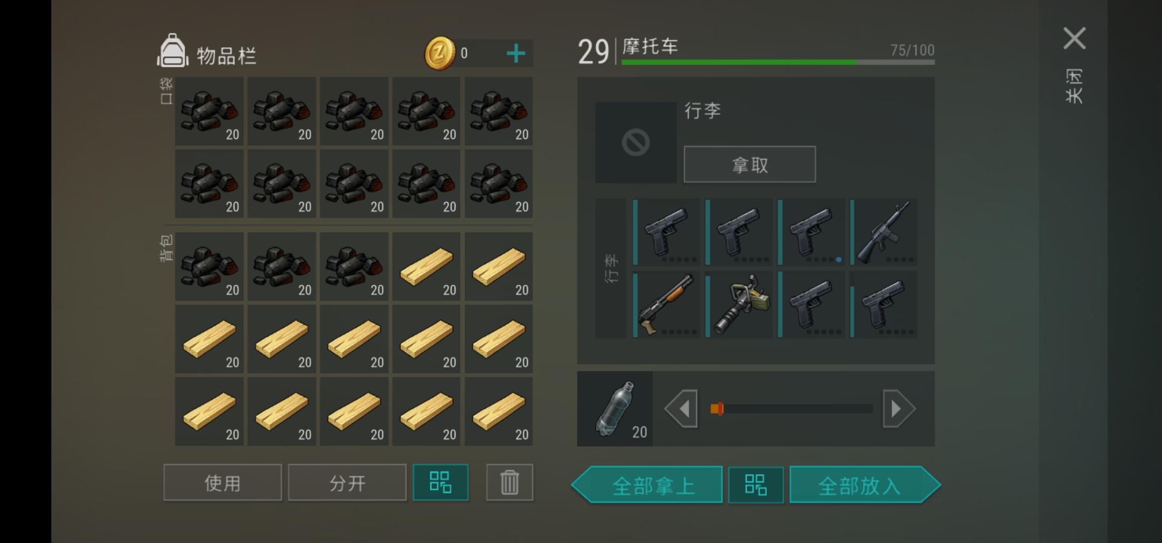 1是罐头 2皮子一堆 3石块一堆 4大量近战武器