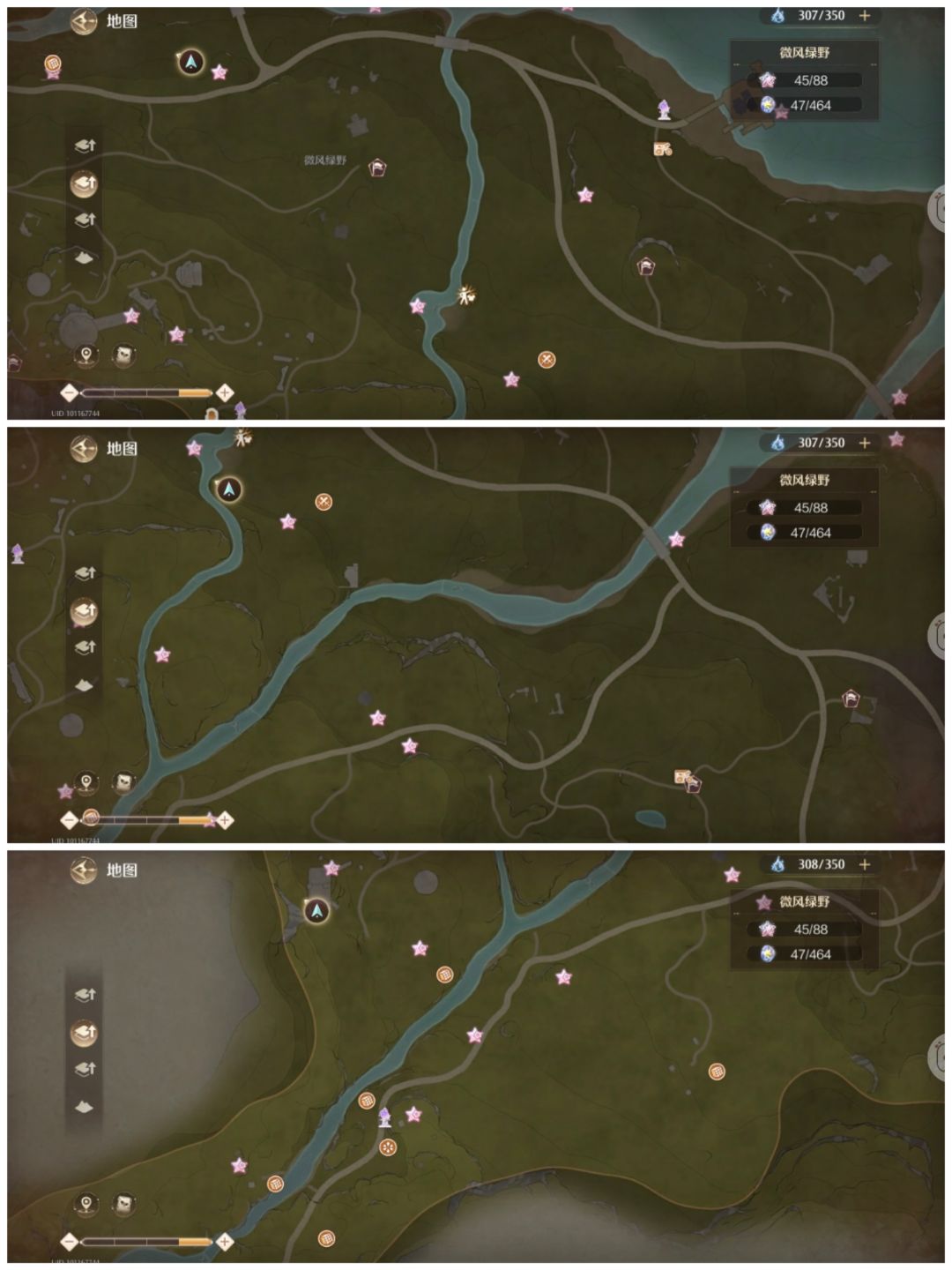 宝箱和灵感部分没有记录到,只能保证从之后的地图区域位置都会标注上。