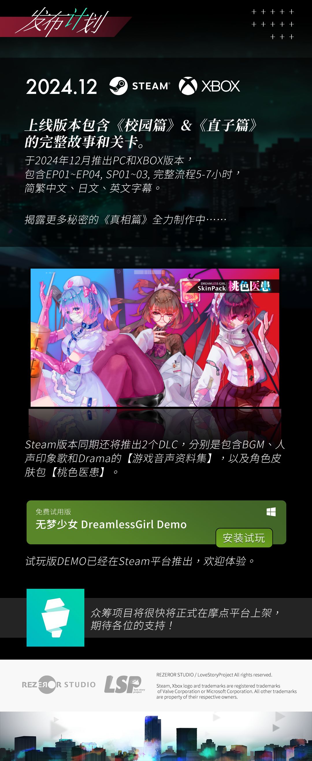 我们决定于2024年12月12日 ]在XBOX和Steam平台发布游戏的正式版本,