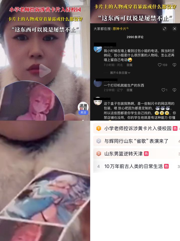小学老师控诉涉黄卡片进校园,原神背锅?
