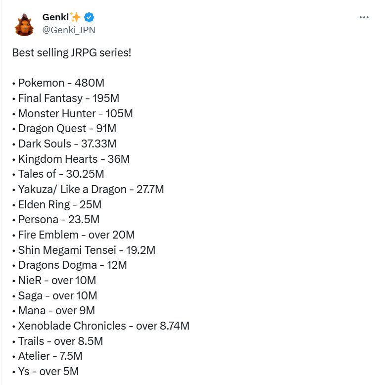 盘点史上最畅销的JRPG:《宝可梦》第一《最终幻想》第二