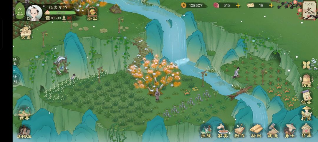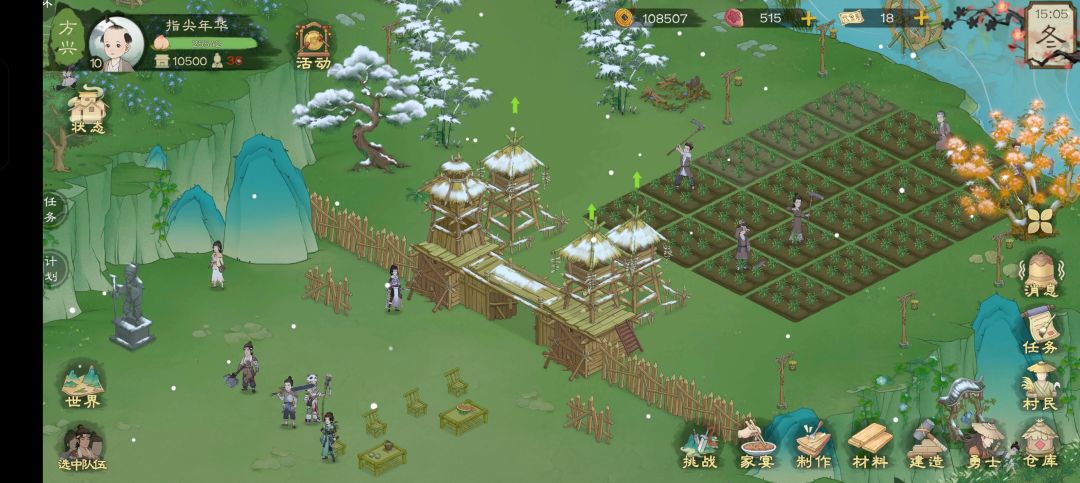 2、游戏四季分明,春天花开,夏天雨水多,秋天桃子成熟,冬天下雪,种植物分季节,比如水稻只有春夏可以种,小麦冬天,还有白菜,豆子等