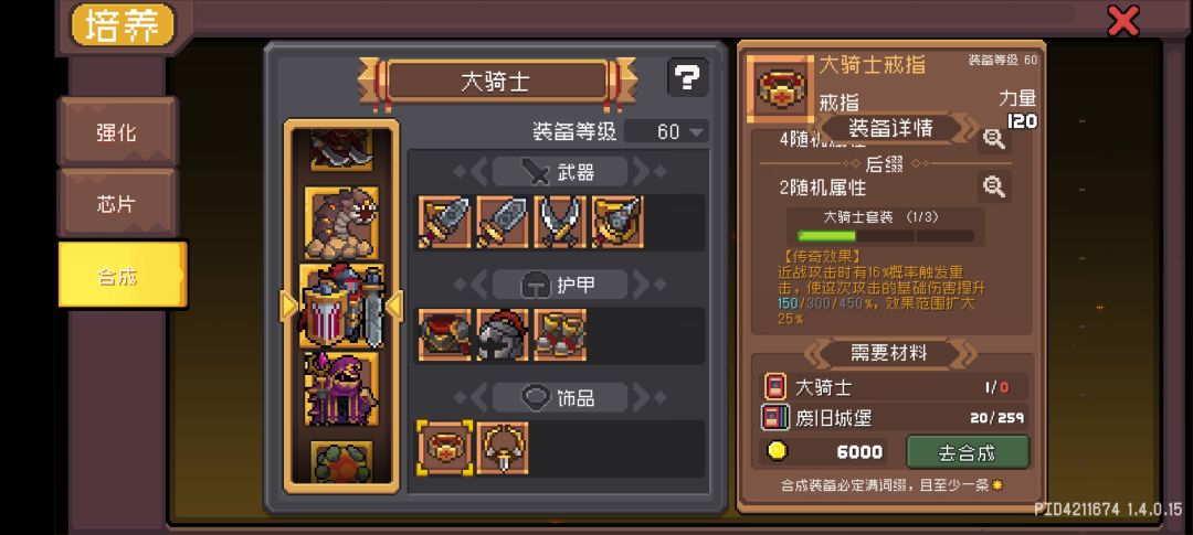 可以跟身上装备凑三大骑士传奇效果