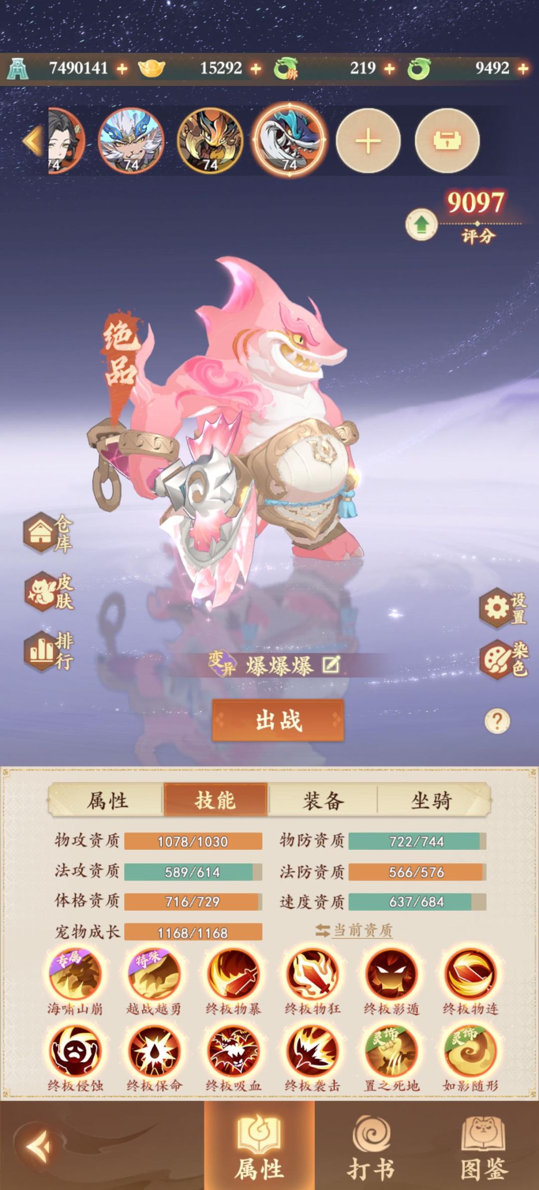 小鹿点评:啊?!真的有这种法宝吗!最强大脑五连!法攻面板直接突破2500!太厉害了!必须上墙!大人们如果有自己心爱的宠物,也可以秀出来让小妖见识见识!