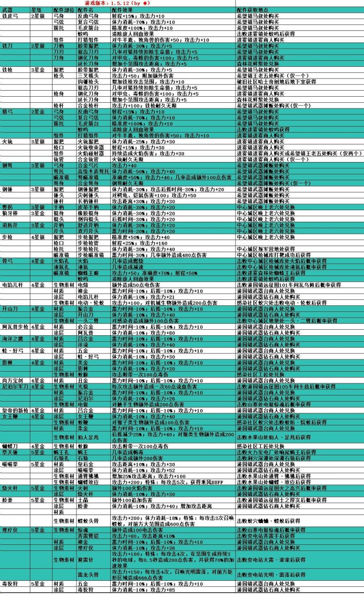 目前所有武器的配件。 2025.3.24 已更新