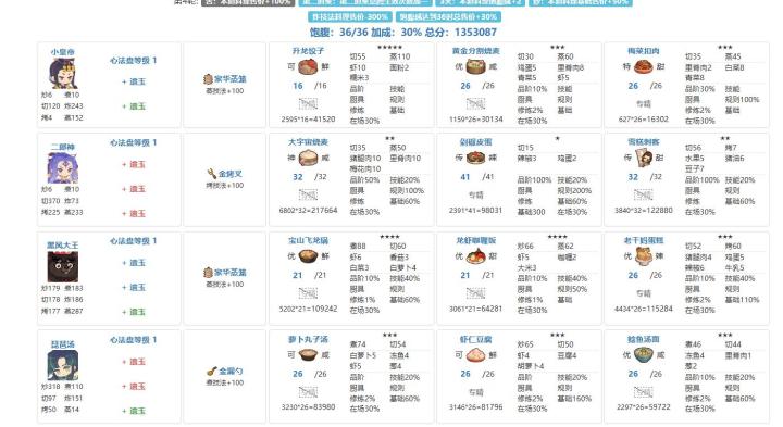 本来大概可以150w过的。但是为了好抄一点,换了菜和厨子 给大家参考