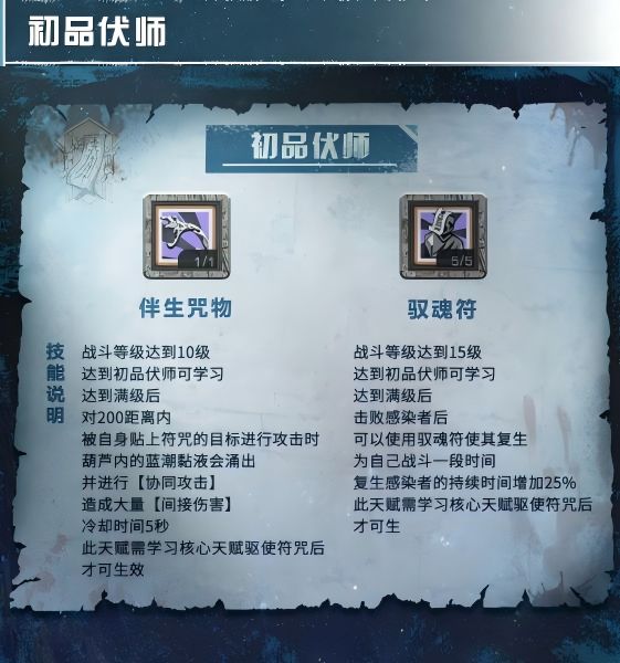 可学习伴生咒物、驭魂符技能