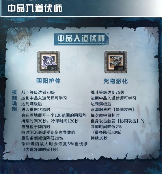 可学习阴阳护体、咒物激化技能