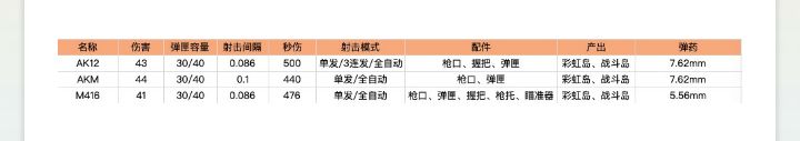 枪械数据对比: