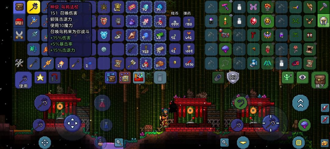 甲虫莎草纸与死灵卷轴的召唤伤害可以同仆从与哨兵共享再搭配上施法桌可以召唤四个仆从加上套装效果四个哨兵可以有八个召唤物,而毁灭者勋章不仅可以增加近战武器的伤害还可以增加召唤物的伤害在全饰品是险恶加上吃饱喝足的状态下最强弩车法杖的伤害可以高达430点伤害而乌鸦法杖的伤害可以有151点伤害如果是星尘龙的话也有110点的伤害并不比同一时期的召唤师差多少。