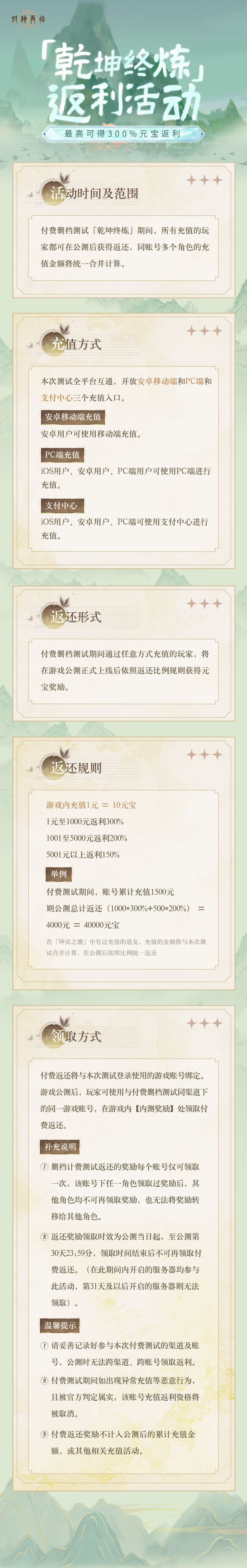 福利放送 | 最高返300%!「乾坤终炼」充值返还规则说明~
