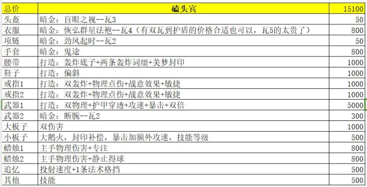 装备:衣服可以不用瓦最后一条的,鞋子要一条偏斜,这样拿了30%减伤