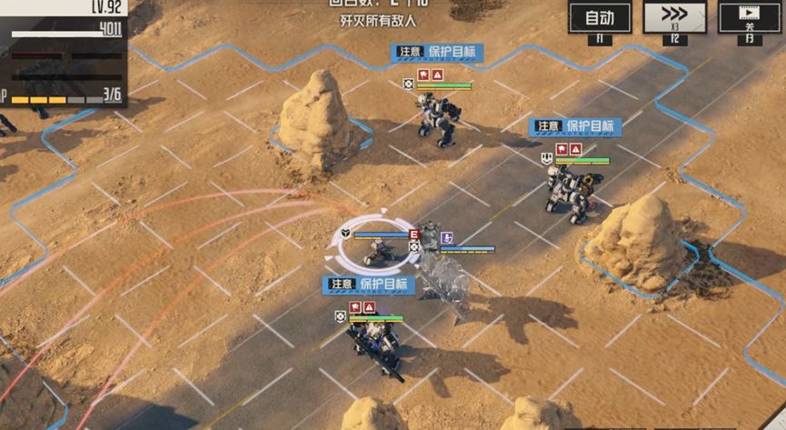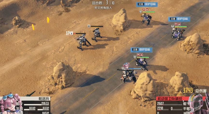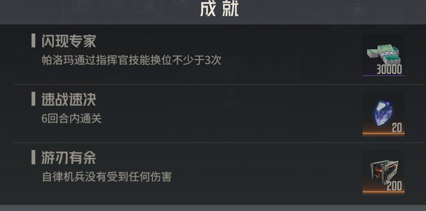 本关围绕帕洛玛身上的可疑之处,众人回到泄密地点,调查三架机兵,随机遭遇敌人大部队袭击,我们需要保护好三架机兵不被破坏。本关也是帕洛玛指挥官的初次参战,熟练理解并运用帕洛玛的技能即可轻松通过。