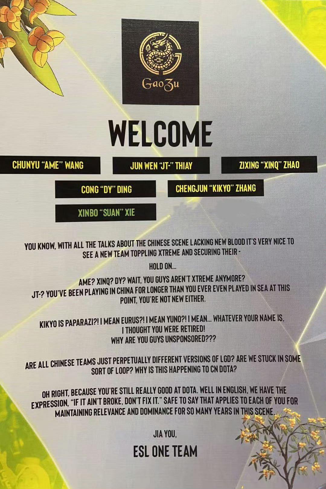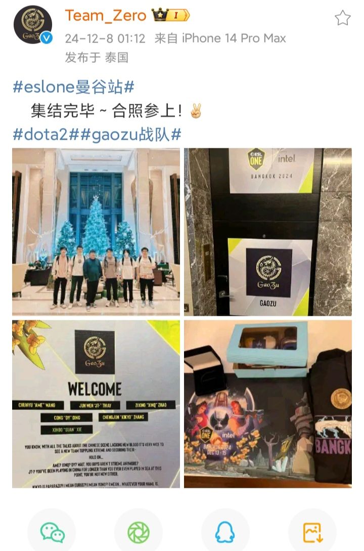 12/8号,即将参加ESL的高祖战队发文,表示集结完毕并已到达泰国❗❗❗