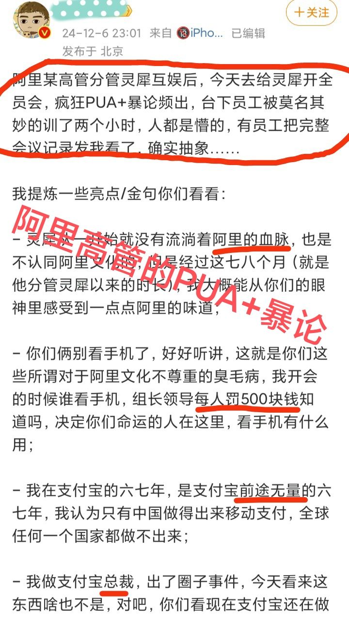 12/6号,阿里高管樊总对灵犀互娱的内部讲话被流出,引发热议后,道歉了❗❗❗