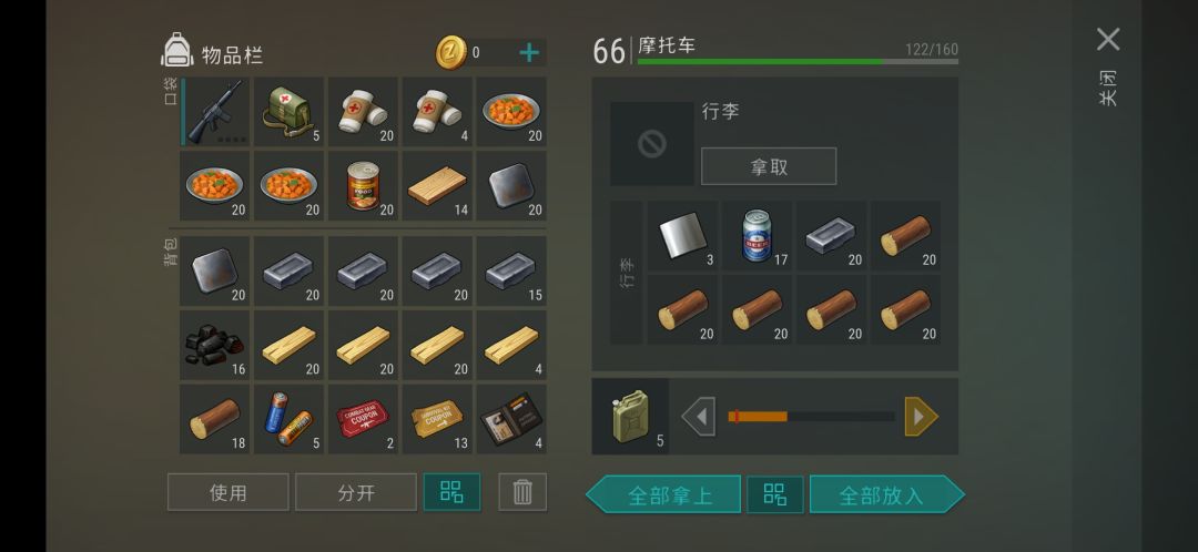 16:汽油6桶,电池5个,汽油瓶4个,空罐头三组。