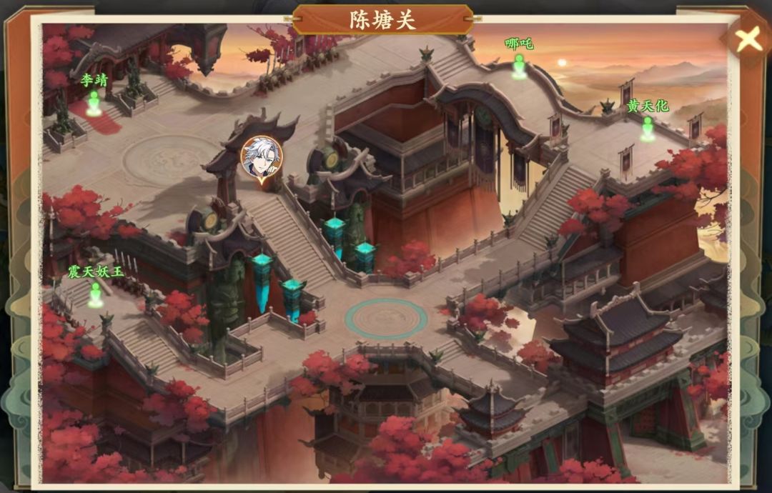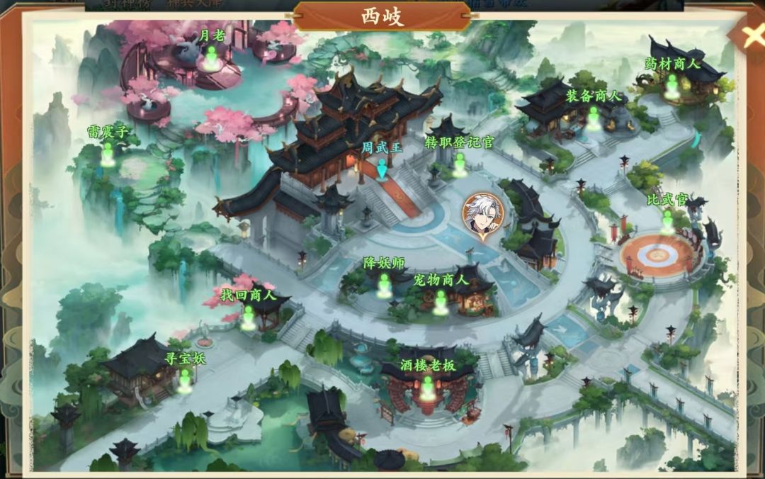 画风是非常中式的山水地图雷震子所在的台阶和月老所在的樱花树,都是非常适合拍照留念的