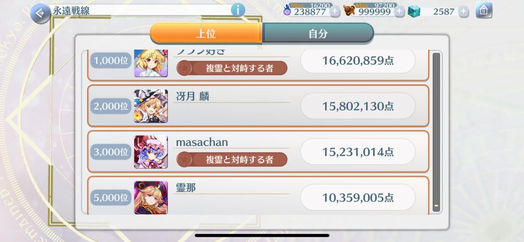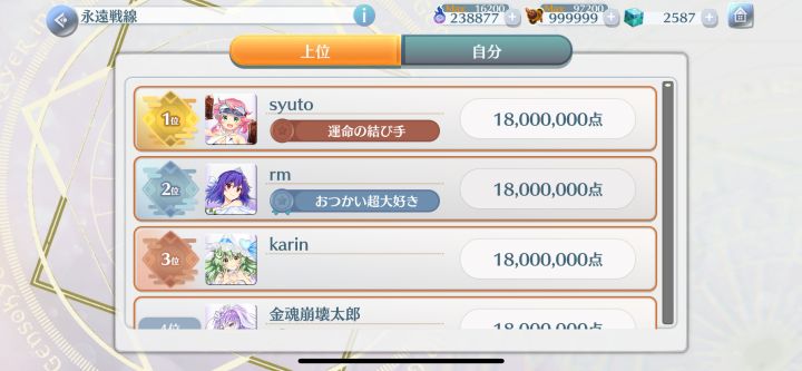 目前日服永远战线的排行榜