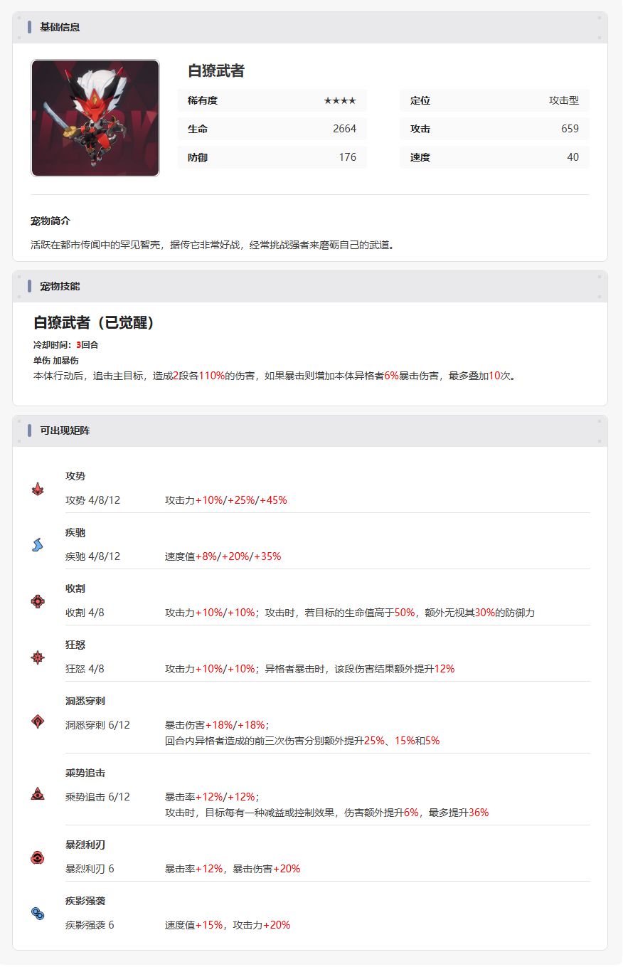 【美梦 | 智壳攻略】白獠武者
