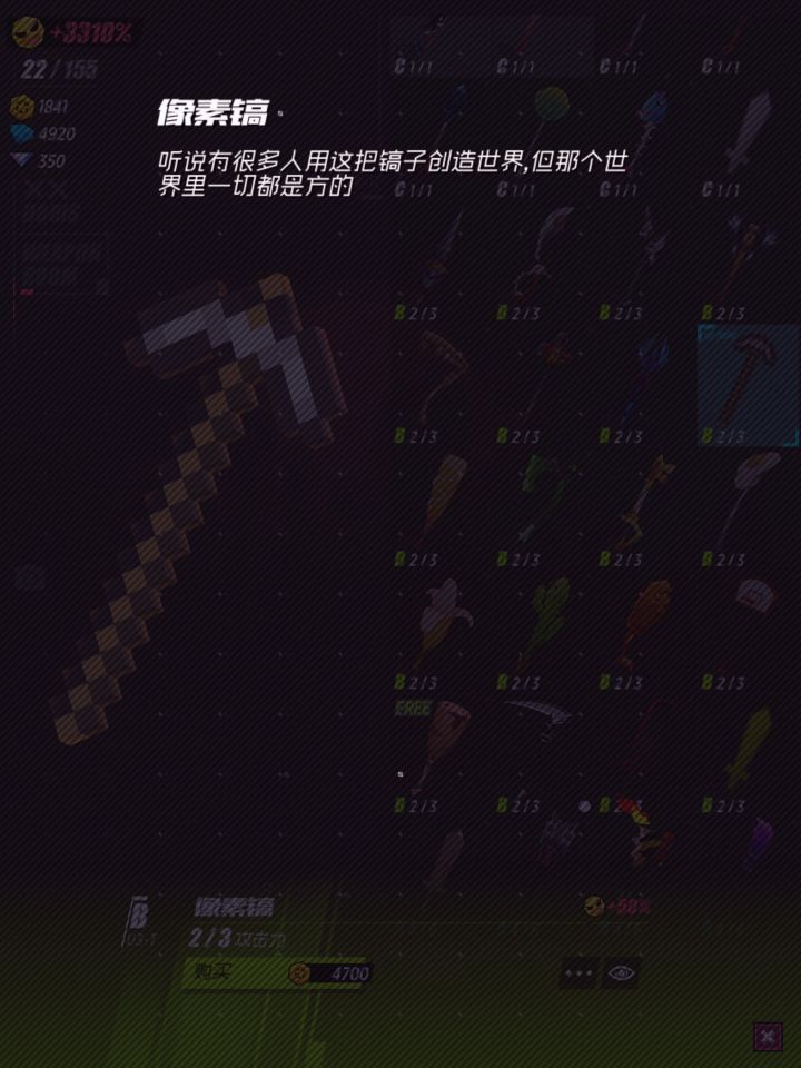 夜晚来临时,我被僵尸的叫声吓得初一才再次尝试这款游戏。不过很可惜,这把武器在刀光与少女只能用于战斗,并不能发挥原来的作用。创造世界就不用了,能破坏路障也可以呀