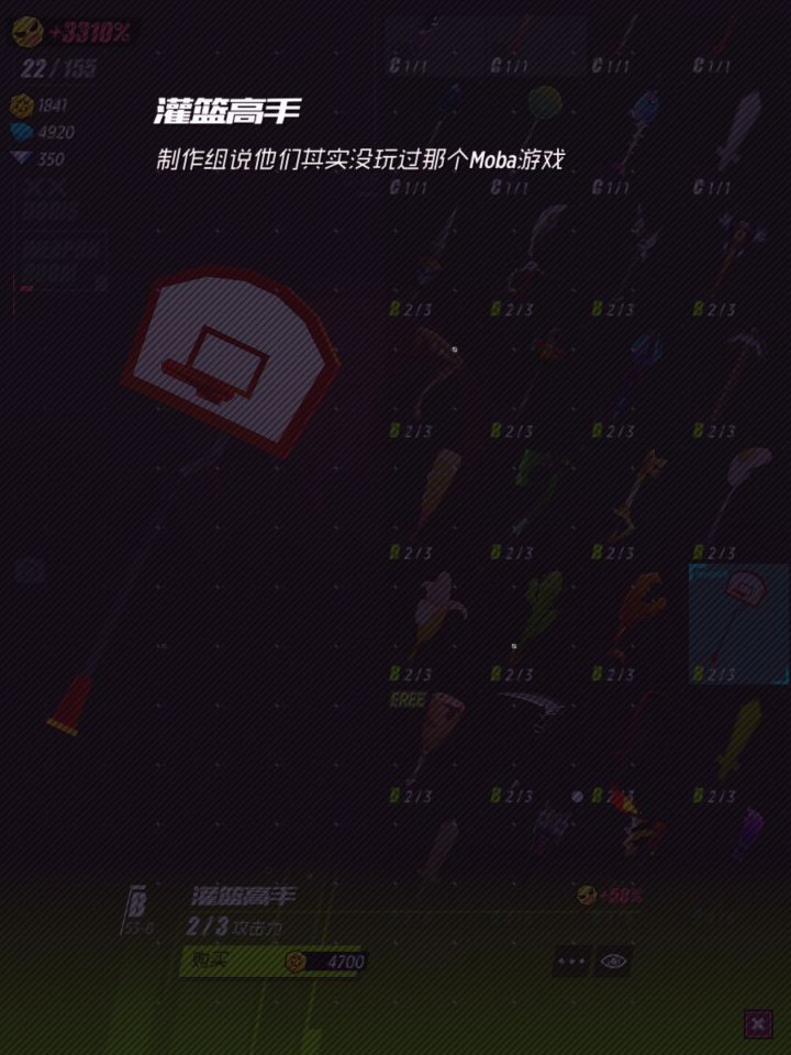 第二个武器是一个篮筐,平平无奇,但名字叫做“灌篮高手”。