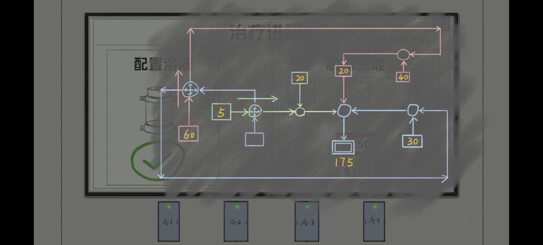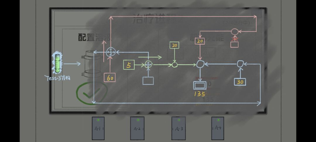 治疗进程3/4,切换场景四,点击B-3电箱,如图所示自检,获得“机器零件(损坏)”。
