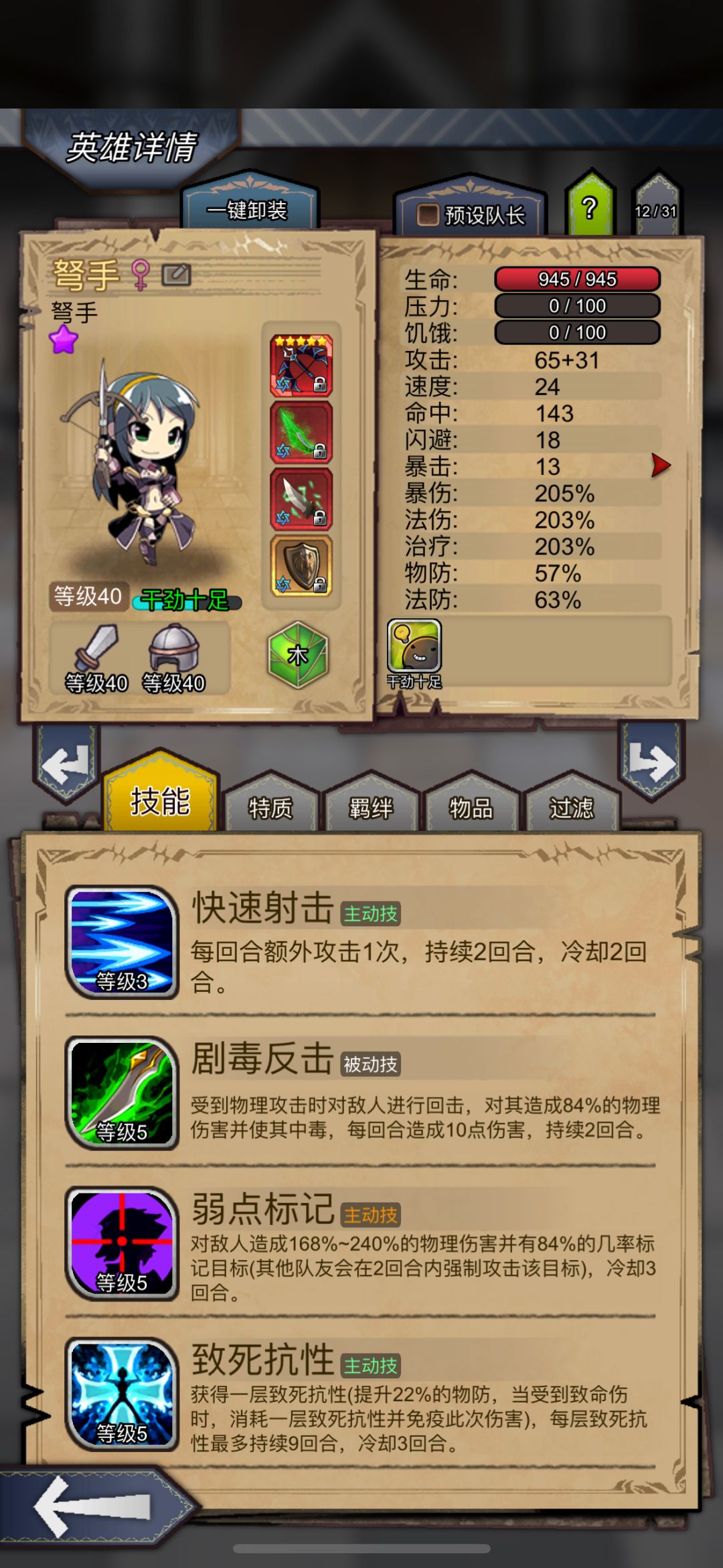 经过多轮测试,前期一般刷图队刷遗迹上来会卡在18-2或者19-2,替换毒队在现有攻略里都是双防起码要90%以上,配置要求较高。以上阵容只需要镇长和黑骑双防70%左右,其他除灵媒外50%左右,灵媒双防可以为0%,不需要羁绊,适当手动嗑一下药,都能实现全通。如果面板等于或大于贴图,则完全挂机自动,无需手操,遗迹21-2通关时长为16分钟。(附图带有各英雄面板)