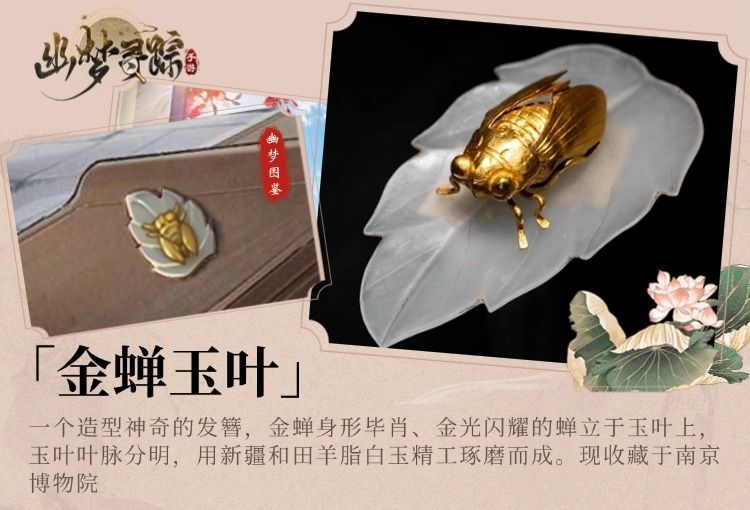 以上是关于【金蝉玉叶】的相关介绍,当然啦!小幽的探索之旅才刚刚开始!游戏中藏着不少文物,可能你还没发现!想不想了解更多隐藏的历史瑰宝?或者有其他文物想看小幽揭秘的?快在评论区留言吧!