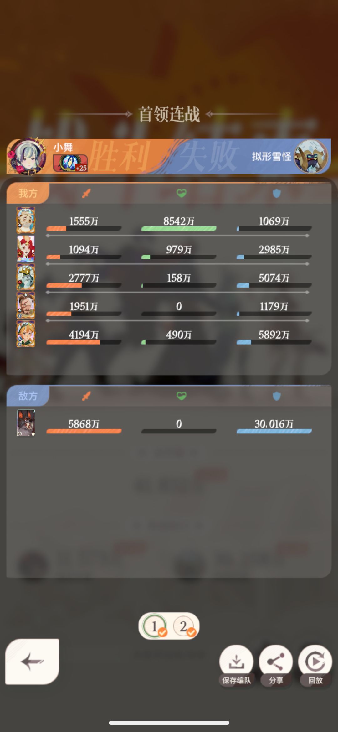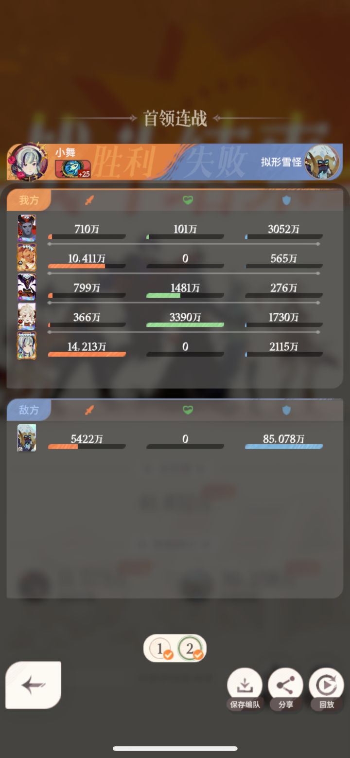狼王比较难打,小舞伤害很低,索性就不指望狼王的伤害值了,小舞把所有的伤害期望都给了雪怪,雪怪阵容:蝎子+四手+五月+猴妹+阿德,这套阵容练度高的朋友应该雪怪自己的伤害就够全奖励了!回响用魔弹术,伤害非常可观!