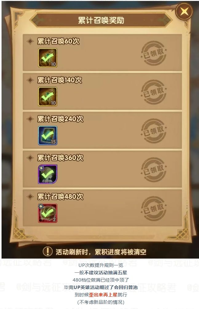 其余内容杂谈,抽卡附赠的累计奖励还算凑合。480的2件指定种族红很诱人,想必已经拿捏了氪佬的强迫症,平民抽的时候尽量凑到档位即可。
