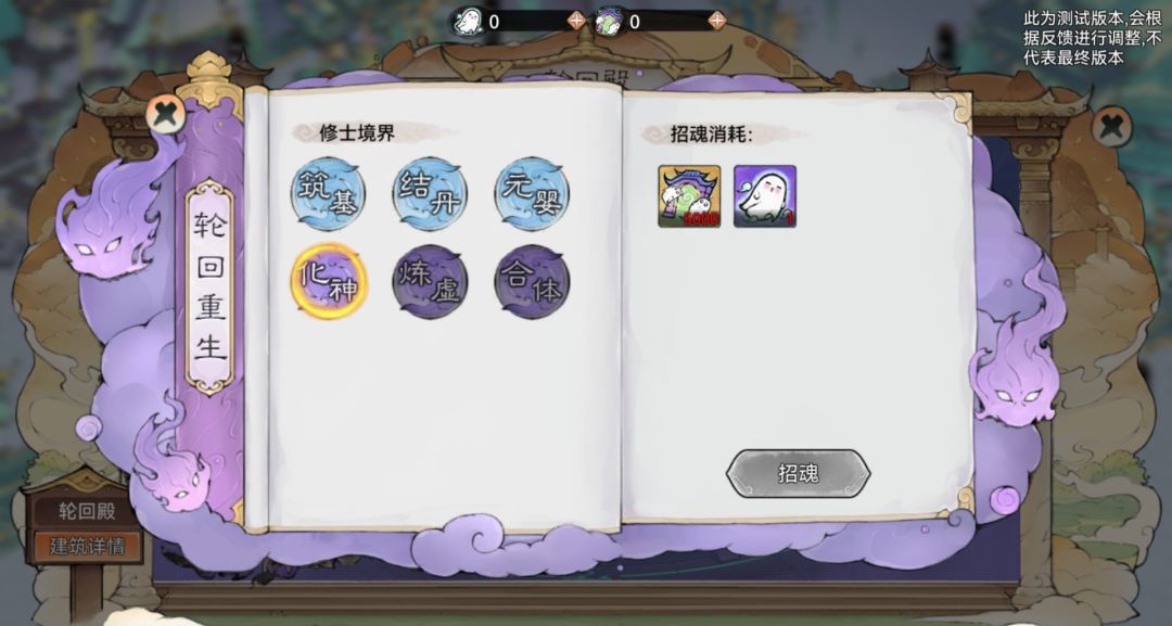 在轮回殿中消耗魂魄和轮回点可使用招魂秘术,让修士涅槃重生。