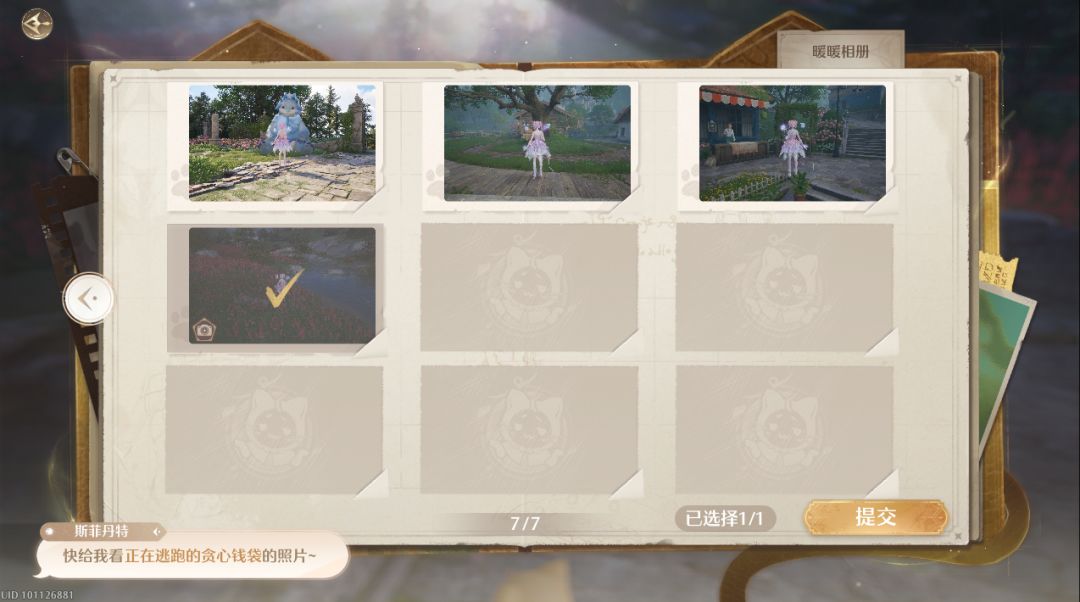 与斯菲丹特进行对话提交刚刚的拍摄图片(小相机图标的就是)