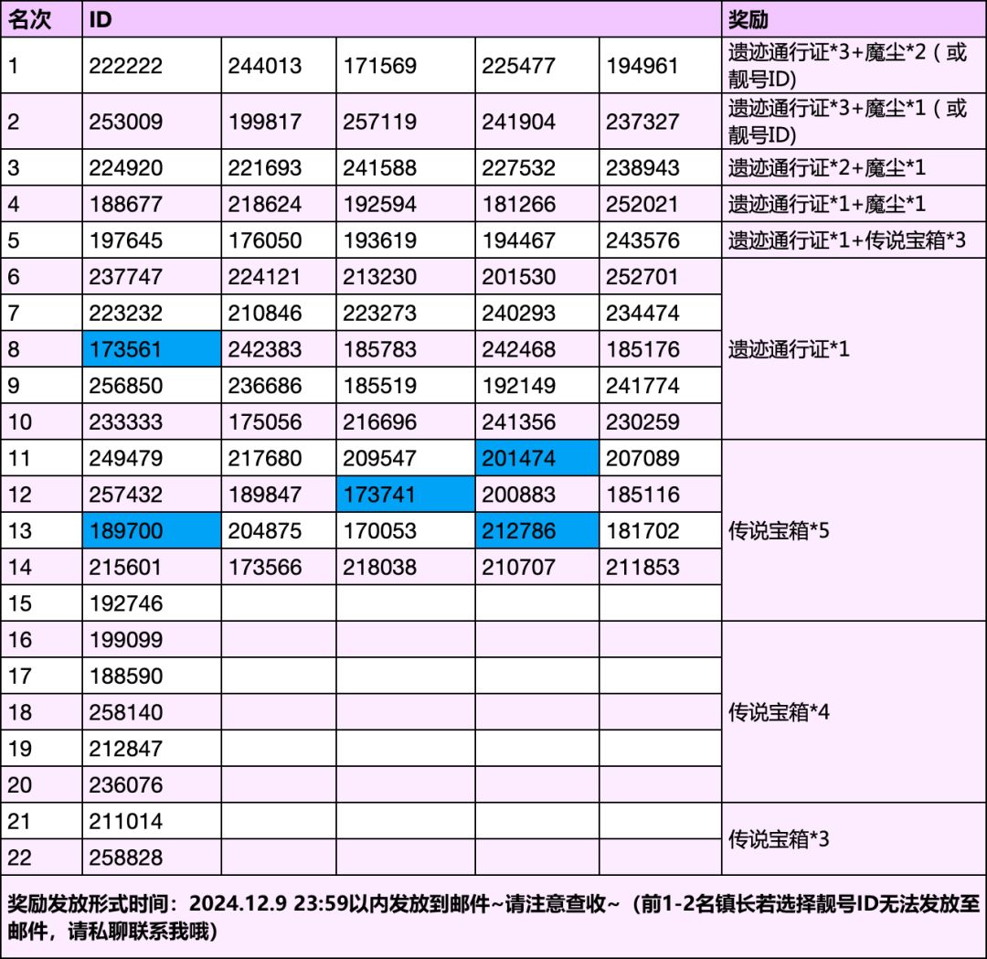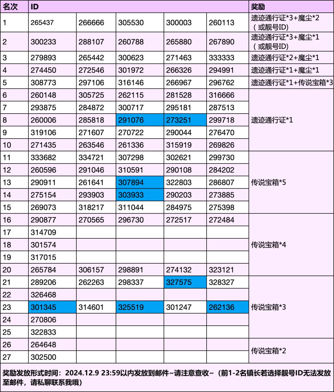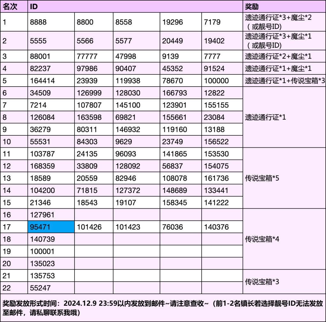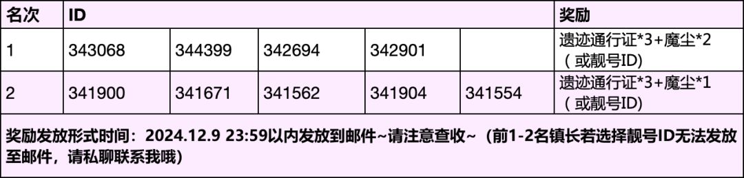 (前1-2名镇长若选择靓号ID无法发放至邮件,请私聊联系我哦)