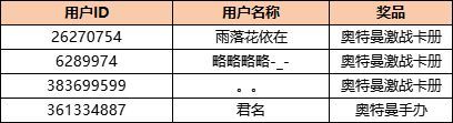 3、我们将从参与玩家中抽取3名玩家赠送奥特曼激战卡册,1名玩家赠送奥特曼手办。