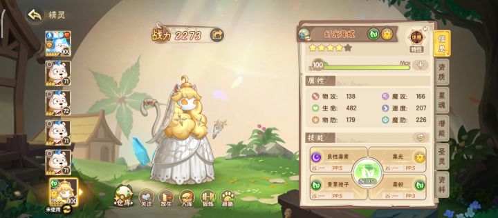 白蘑菇撒毒,优先保证自身血量和身上的物防buff(剩1回合的时候用小鱼来补)的前提,抽空放青草孢子就能磨过去