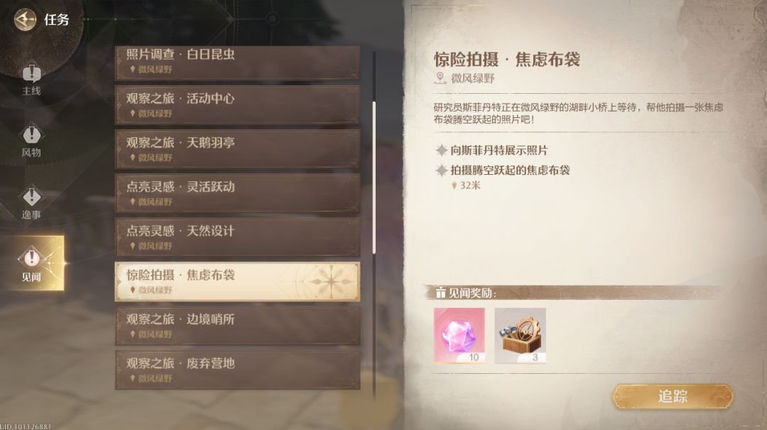到达这个位置后即可解锁【见闻任务】惊险拍摄·焦虑布袋,接着跟斯菲丹特对话