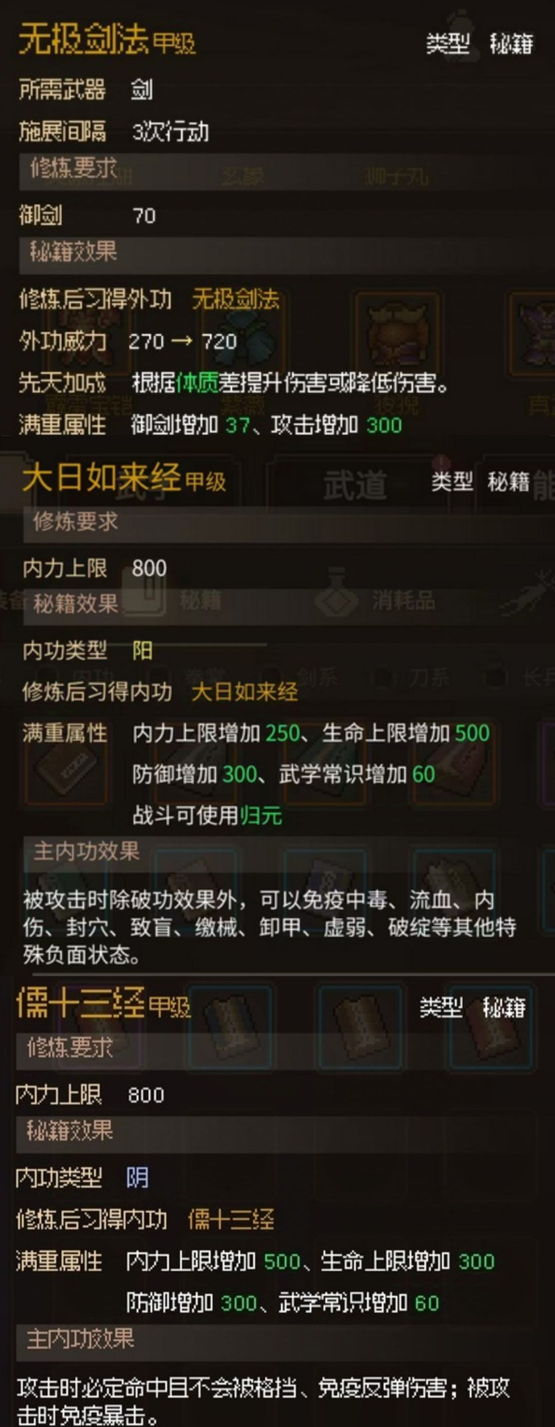 武林霸主开局,武道山林点满,肉的天赋都点,气血翻倍堆体质,心有灵犀什么都点,最好点了千王之王,丢暴雨梨花钉打光头慧元,但是我没点,不用暗器。体质拳法开局,拿破庙拳法,快点去开家园。体质无极剑法,儒十三经,大日如来经,九州决为主,再拿半瓶醋亲儿子轩辕剑。怎么跟其它剑法功法合红色的,自己看着办,内功换着用。轻松至极的玩法,不需要操作,适合新手