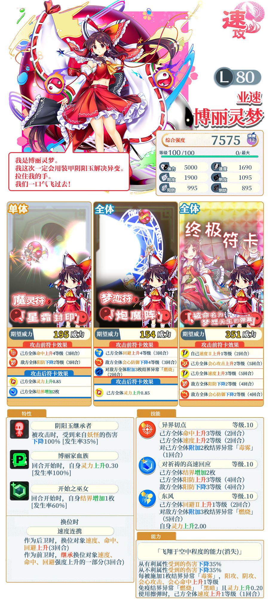 ※「[业速]博丽灵梦」需要使用同名伙伴或者「灵之替身」进行界限突破。不同泛异记号的伙伴、「灵之替身」以外的替身无法对其进行界限突破。