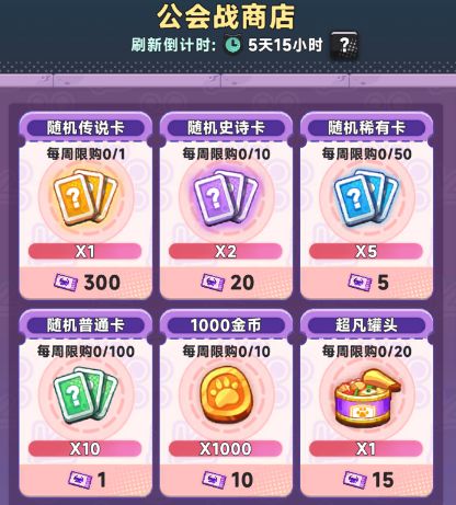 公会奖券:公会奖券可以兑换金、紫、蓝、绿卡,金币,罐头和换卡币,推荐新手每周换满1w金币(金币很重要!金币很重要!金币很重要!
