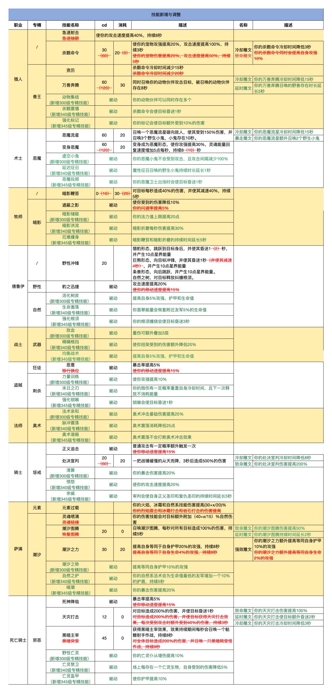 部分专精技能顺序调整:部分主动技能提前