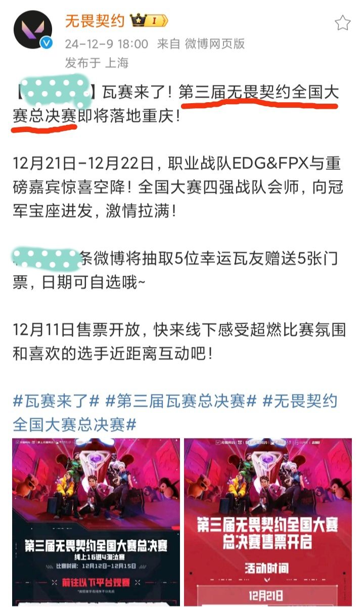 12/9号,无畏契约官宣,第三届无畏契约全国大赛总决赛即将在重庆举办❗❗❗