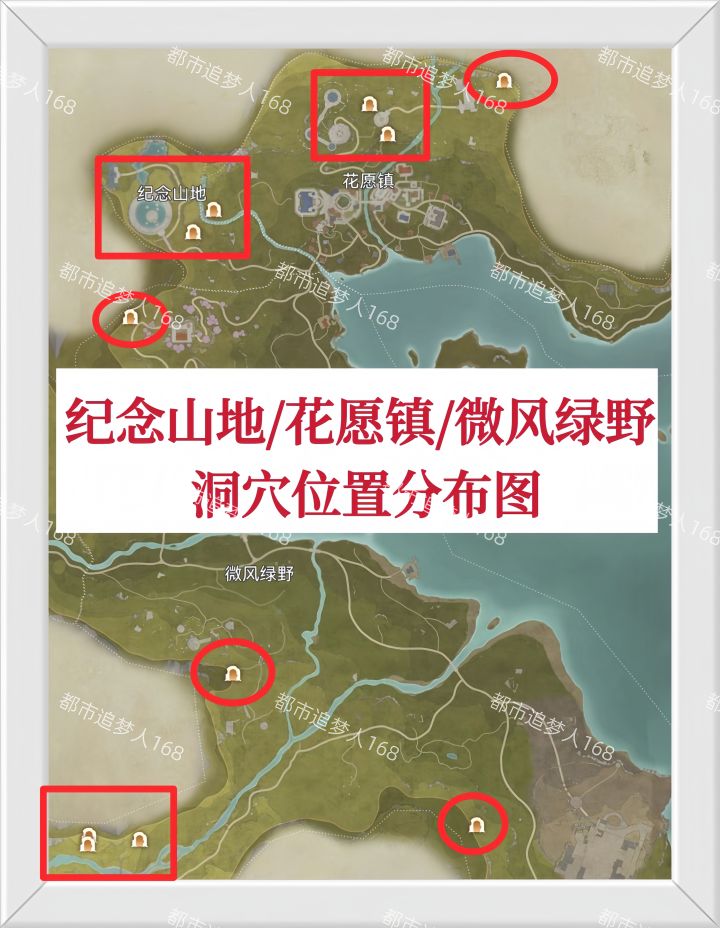 图三:纪念山地/花愿镇/微风绿野 - 洞穴位置分布图。